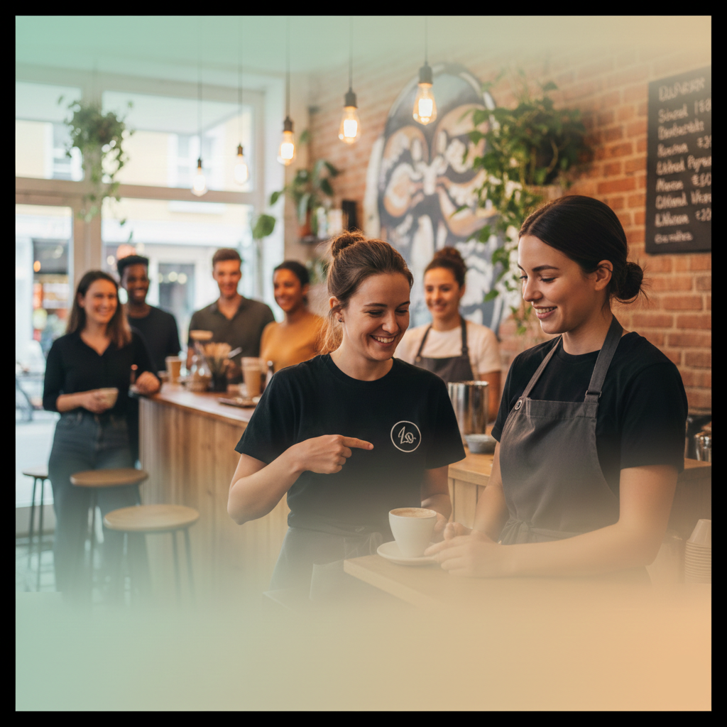 Egal ob Café, Restaurant oder Startup – wir drucken dein Logo auf die gleichen hochwertigen Textilien. Lokal, nachhaltig und ab 20 Stück über unser B2B-Label NewCompanion.